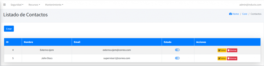 Opción la cual los usuarios pueden gestionar y organizar de manera eficiente tanto los contactos internos (miembros del equipo de trabajo o de la misma organización) como los contactos externos (colaboradores, clientes, proveedores, entre otros) que son relevantes para los proyectos en los que están trabajando. Esta herramienta permite mantener una base de datos centralizada y actualizada, asegurando que toda la información de contacto se encuentre disponible de manera ordenada y accesible en cualquier momento.