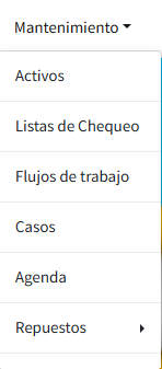 • Casos: Se registran como casos las actividades de mantenimiento específicas que se programan para cada Activo; a cada caso se le asigna el Flujo de Trabajo a ejecutar y el responsable.