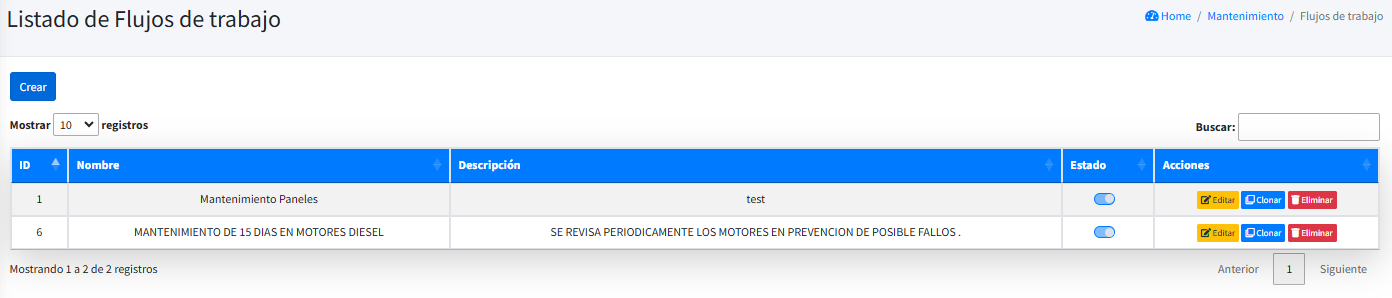 Clonar: Creara copia de nuestro flujo de trabajo, así se puede aplicar a otros activos para conseguir los mismos resultados e intervenciones.
