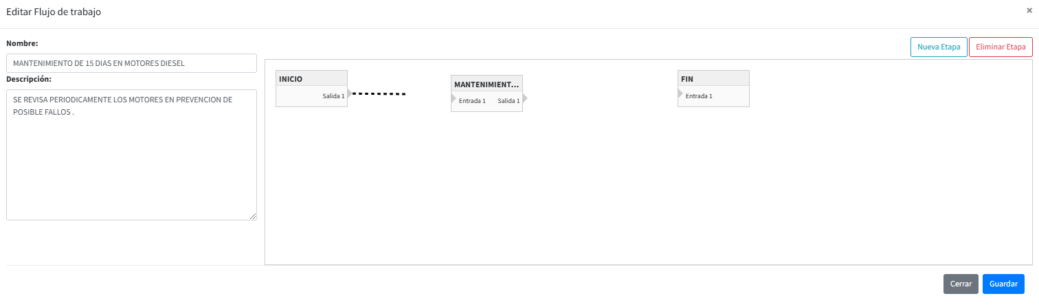 Editar: Nos permitira modificar todas las opciones de etapas creadas.