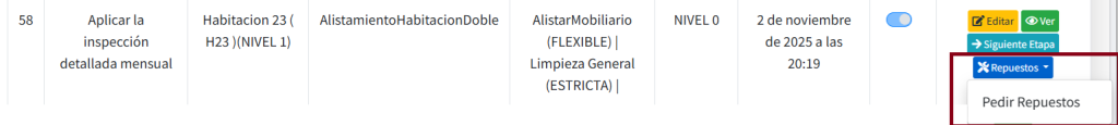 Opción Pedir Repuestos adicionales desde Listado de Casos.