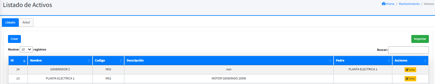 Lograras visualizar tus activos desde las opciones de Listado y Árbol.