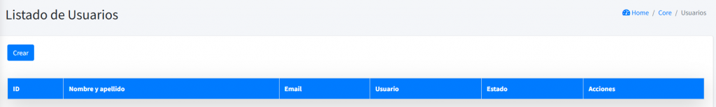 Este apartado está dedicado a la gestión de usuarios dentro de la aplicación web, permitiendo tanto la creación de nuevos perfiles como la asignación de los permisos correspondientes a cada uno. Su funcionalidad central es proporcionar una visión clara y ordenada de todos los usuarios registrados a través de un listado, lo que facilita su administración y seguimiento.