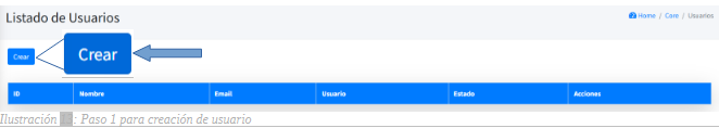 Luego de dar clic en crear, se va a desplegar un bloque con el debido formulario para la creación de los usuarios.