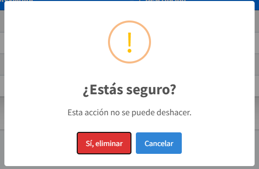 Las unidades de medida existentes se pueden editar o eliminar de acuerdo con su perfil de acceso. Para editar haga clic en el botón Editar y se habilita el formulario de edición, modifique los datos que desea cambiar y para guardar utilice el botón Guardar. Para Eliminar utilice el botón Eliminar, haga clic y se habilita el cuadro de diálogo de confirmación de la acción, para confirmar utilice el botón Si, eliminar, para cancelar utilice el botón Cancelar.
